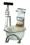 Eu me lembro vividamente do lugar. Os móveis eram escuros e haviam cadeiras para se sentar enquanto se esperava a vez. Os potinhos para o creme de barbear eram de metal mas pareciam de porcelana com a pintura exterior branca. O pincel mostrava os anos de uso pela forma curvada que mantinha mesmo quando não estava repousando no potinho, como as pessoas que se curvam com o tempo. Talvez a vida seja a mão do barbeiro e nós o pincel. Ela esfrega a gente para lá e para cá, moldando a gente na espuma branca, morna e cheirosa dos momentos felizes ou na superfície áspera, às vezes marcada do rosto duro das dificuldades. Tudo bem, eu não pensei nada disso naquele dia, mas ficou bonito vai!